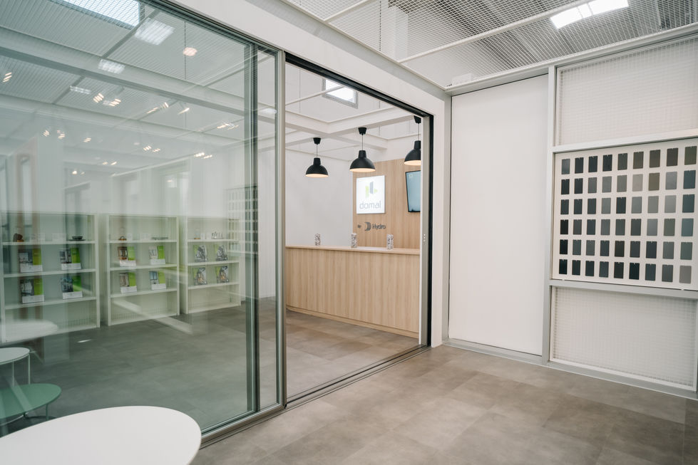 Il progetto di Domal Olbia prende ispirazione dal concept innovativo dello showroom Spazio Domal di Milano e lo adatta ad uno spazio industriale, trasformandolo in un ambiente espositivo dinamico e immersivo. In questo contesto, le linee dei prodotti Domal vengono esaltate, creando un'esperienza visiva e tattile unica per i visitatori. Gli spazi non sono solo una vetrina di esposizione, ma un luogo da vivere, dove le soluzioni architettoniche e di design si integrano in un dialogo armonioso tra funzionalità ed estetica. In particolare, il prodotto di punta dell'azienda viene utilizzato come partizione interna, non solo come elemento divisorio ma come protagonista del layout, sottolineando la versatilità e l'eleganza che caratterizzano la gamma Domal. Questo progetto trasforma un ambiente industriale in uno spazio espositivo che riflette l'essenza dell'innovazione e della qualità del marchio.